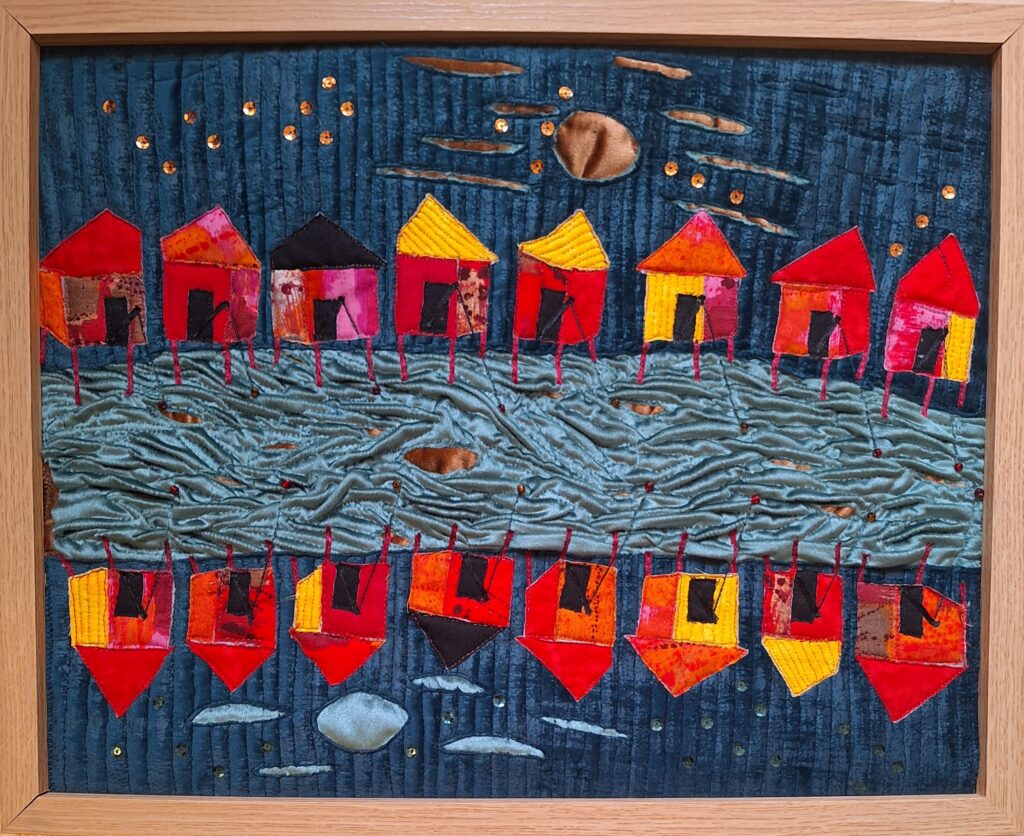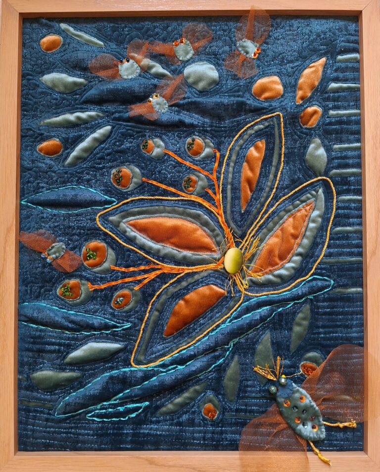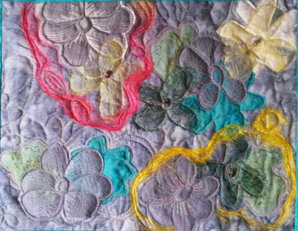 Onderstaande art quilts zijn gemaakt van fluweel in combinatie met andere materialen.