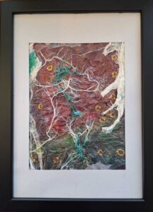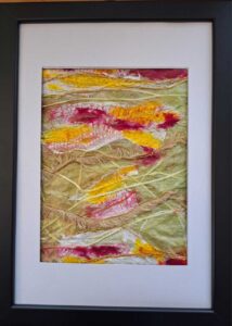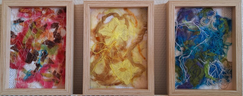 Met papier, verf en vezels zijn deze werkstukken ontstaan.