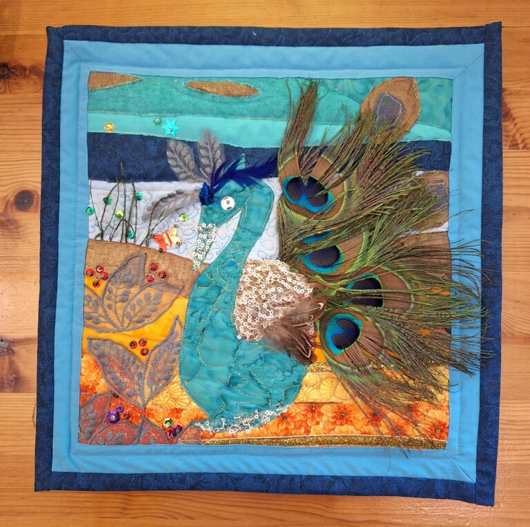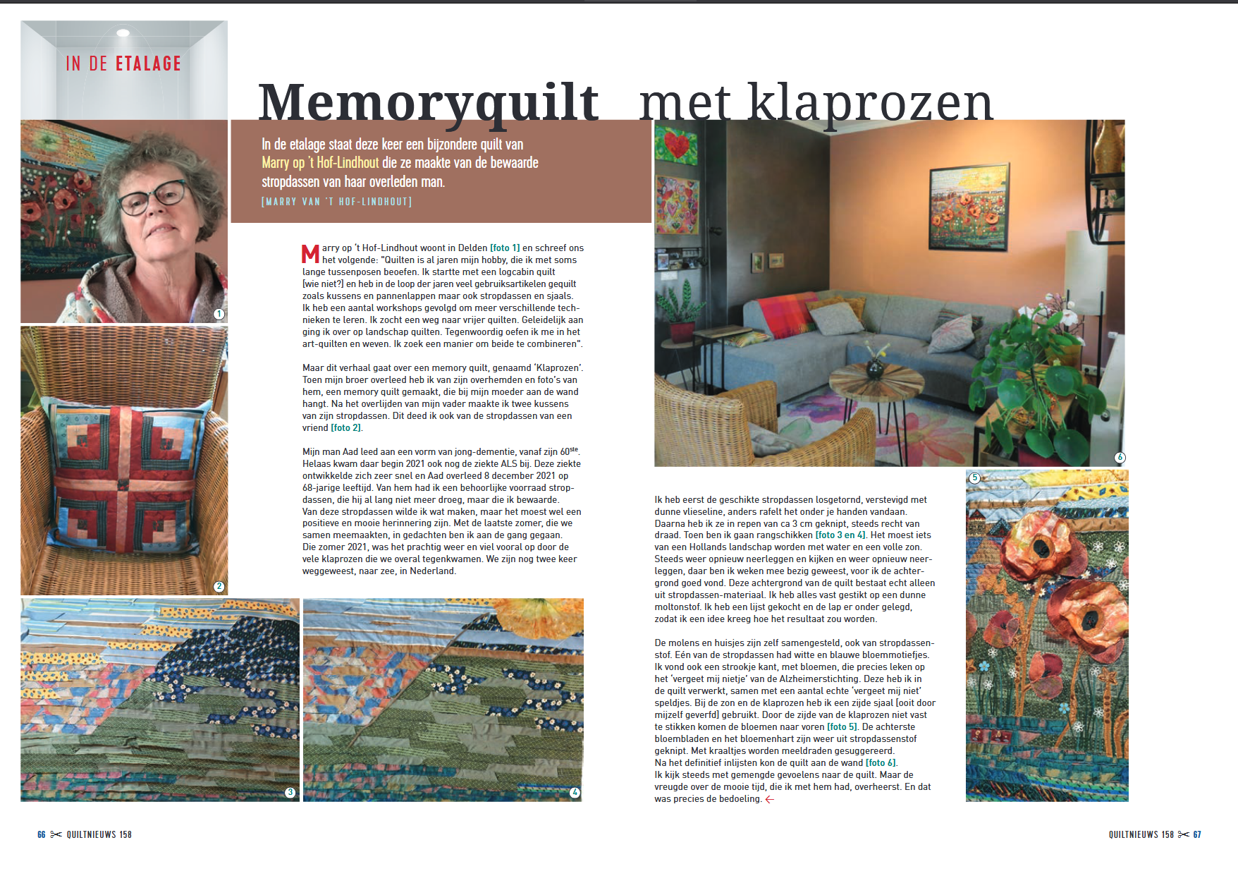 Dit miniquiltje is op reis, het doet namelijk mee aan de tentoonstelling van het Europese Quiltersgilde. ( EQA) deze tentoonstelling zal in Frankrijk, Belgiƫ, Finland en Duitsland te zien zijn. Ook hing het quiltje bij de Patchwork en Quiltdagen in Rijswijk 13-15 februari 2025.